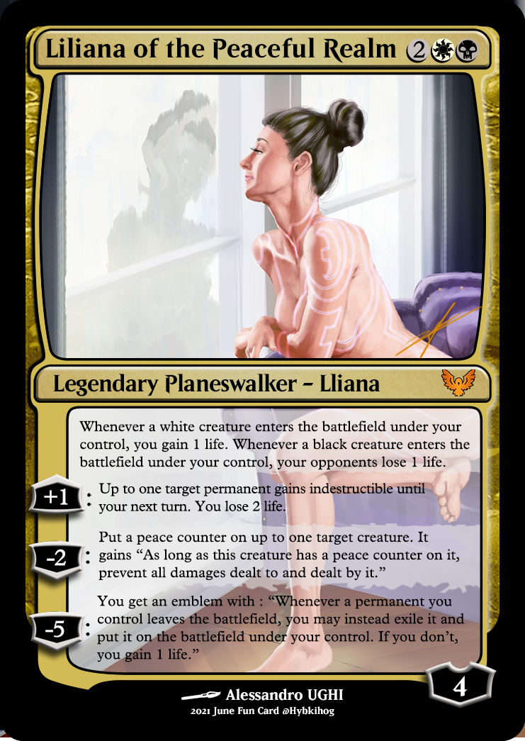 I have also made a personalized card based on what I though it might happens for Liliana, retiring from combat and trying to slowly giving up on her ambitions.
