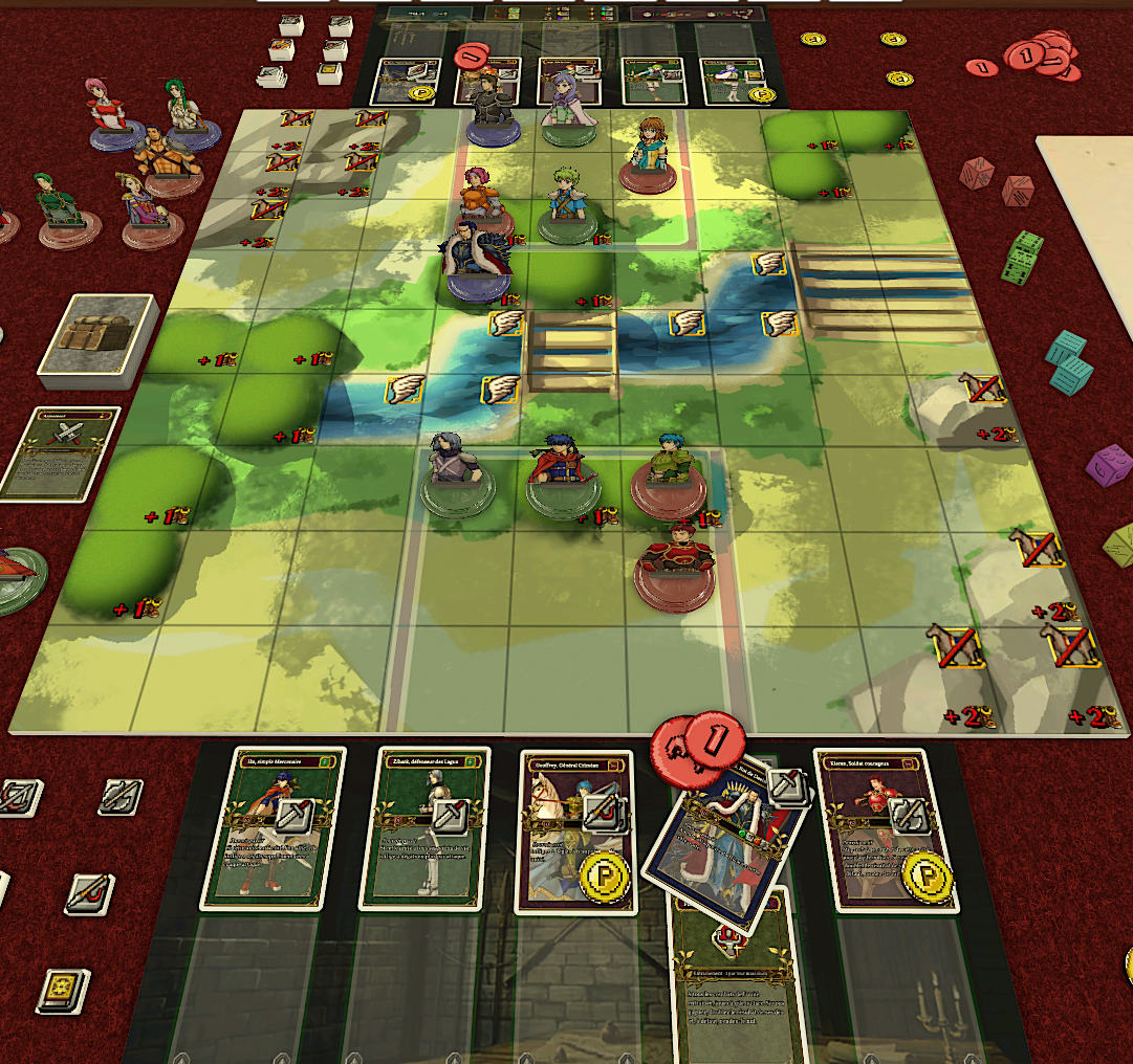 L'idée était ici de faire un jeu de stratégie compétitif à deux joueurs en utilisant les mécaniques du jeu vidéo Fire Emblem, comme le triangle des armes (épée > hache > lance > épée), le type de mouvements, les équipements, les objets, et le plus important : l'asymétrie et la diversité des personnages jouables.