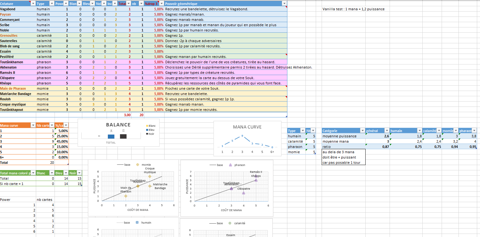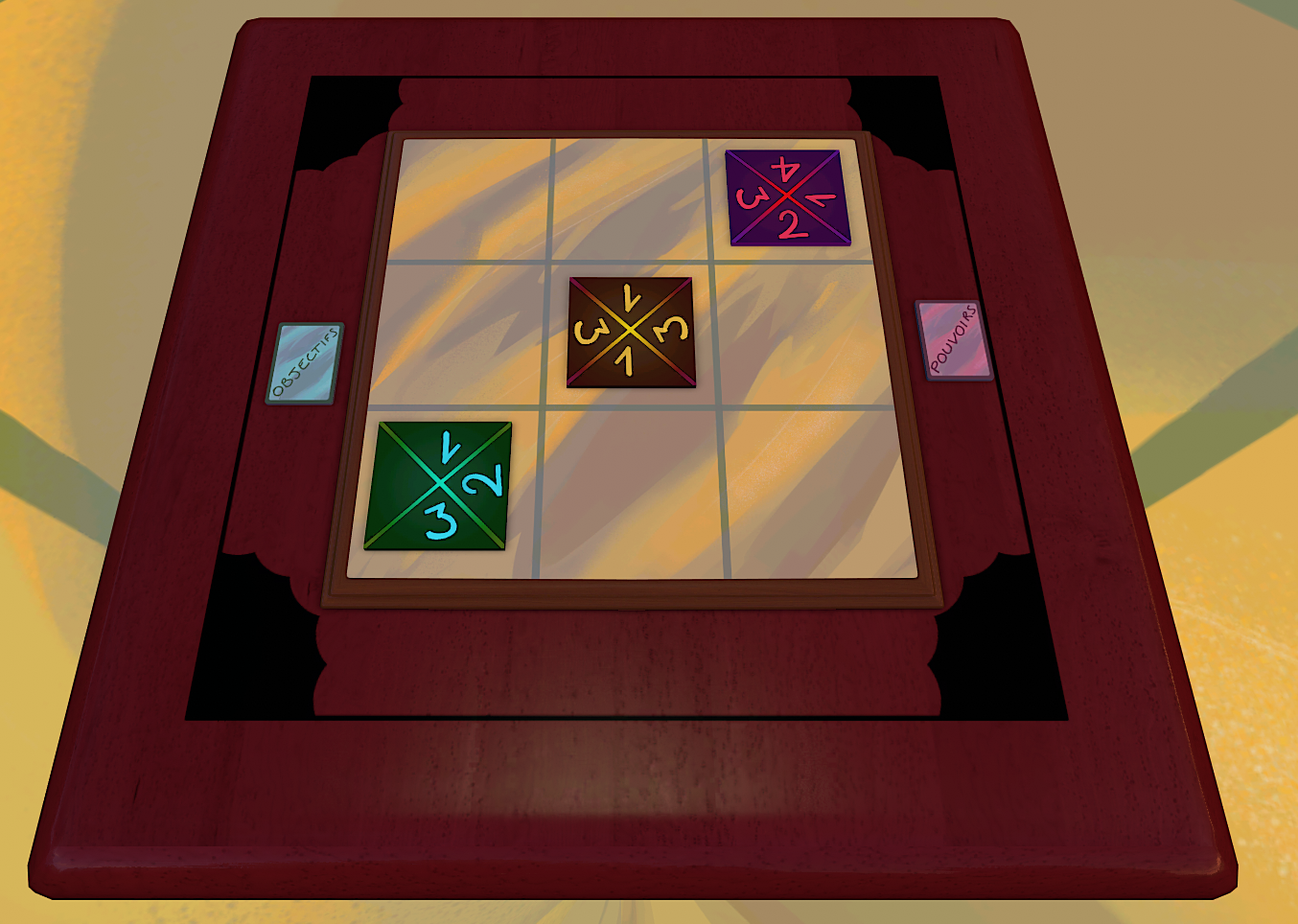 The pyramids also posed a problem : how to move them ? My original solution was to have an "enter the battlefield" (ETB) effect on the creatures, but again, players were thinking too much on how and when to play their creatures. I ended up removing all the ETB effects and giving one of the 3 ressources I had the power to move one pyramid. The game was faster because players had fewer options.
